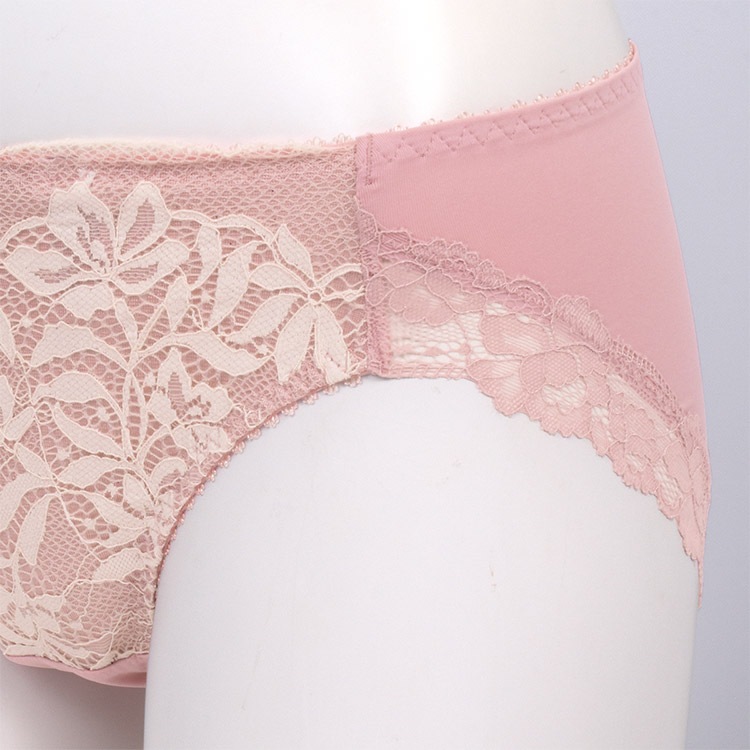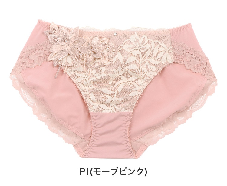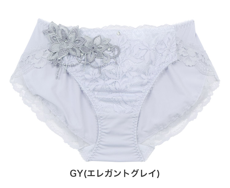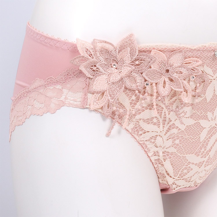 - ヒップ下部まで包み込むパターンと、足繰りレースで綺麗なヒップラインをメイク。