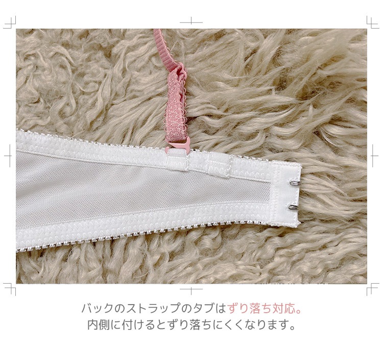 <ショーツ>ナイロン、ポリエステル、その他カップ パッド付き(Wパッド・取り外し可) ストラップ 取り外し不可・ずり落ち対応 アンダー 後ろホック2段3列 取扱注意 お洗濯は、必ず「取り扱い表示」にしたがってください。 ※なるべく実際の商品に近い色味を再現しておりますが、モニター等の条件により、画面上と実物では色味が異なって見える場合がございます。