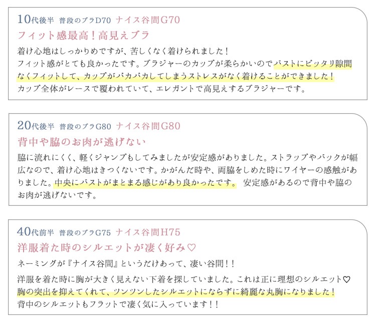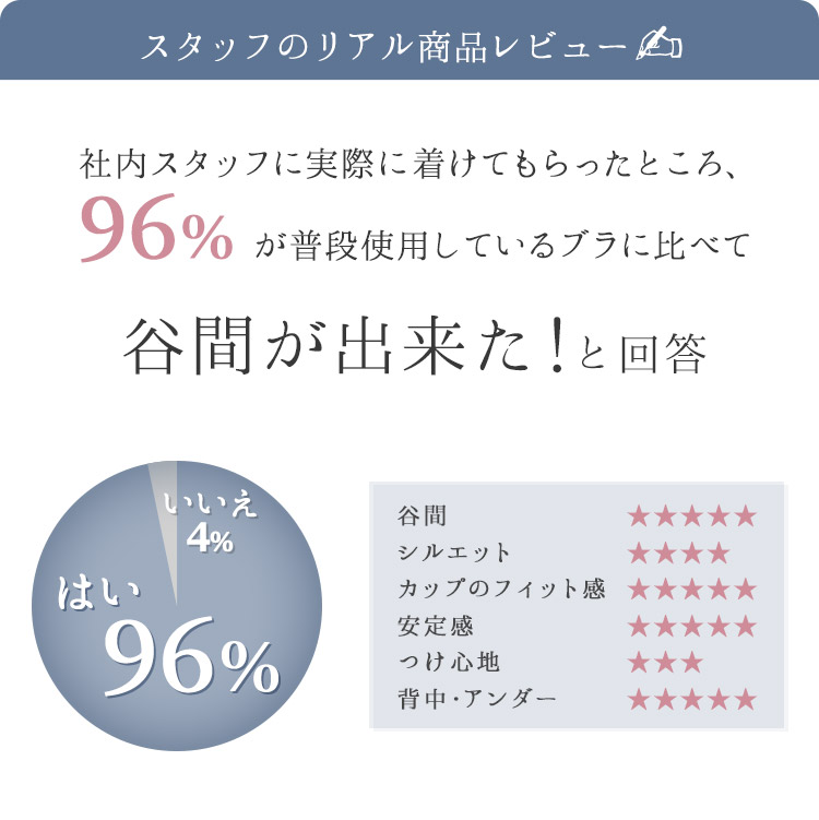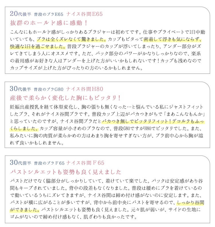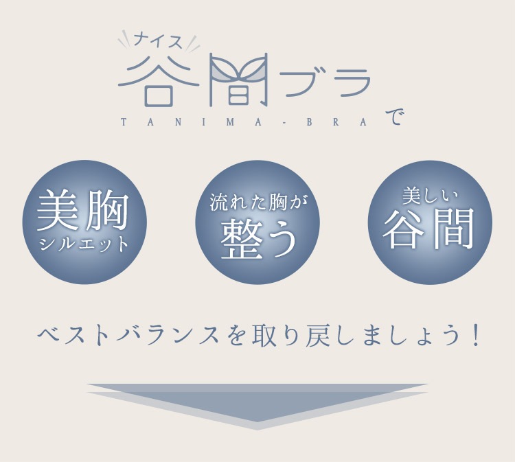 - 柔らかくなり離れてしまったバストを、本来あるべき正しい位置に補正して美胸をメイクする「ナイス谷間ブラ」