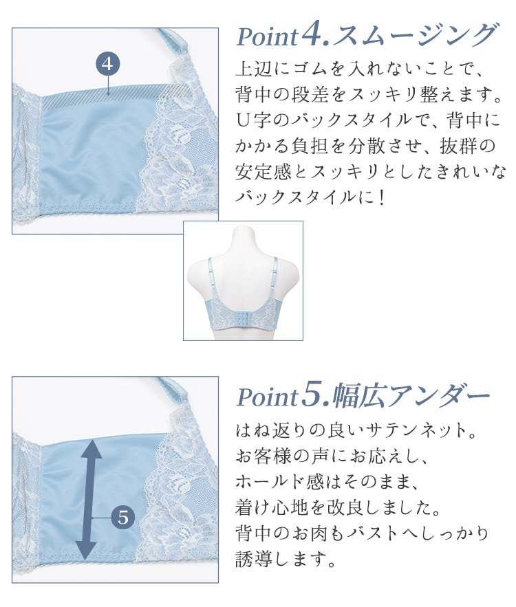 関連キーワード:アンテシュクレ 脇高設計 脇すっきり 段差軽減 大きいサイズ 美胸 美盛 デコルテふっくら