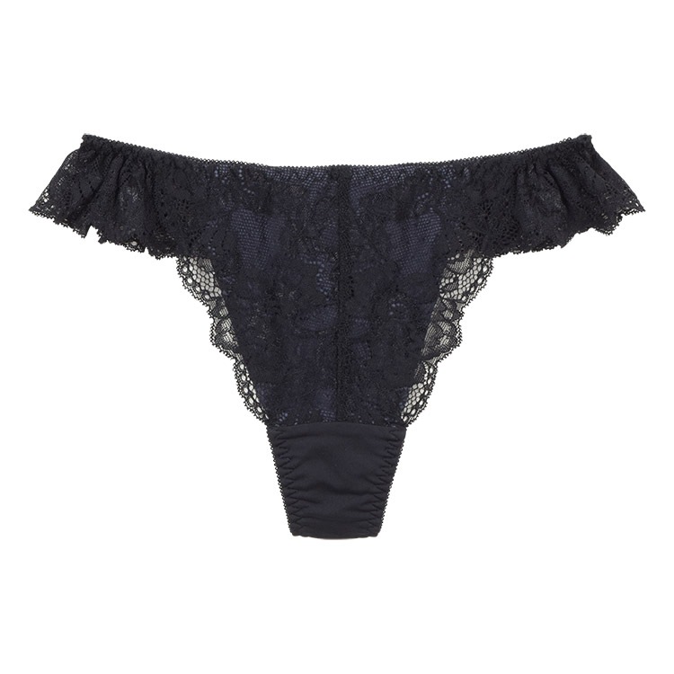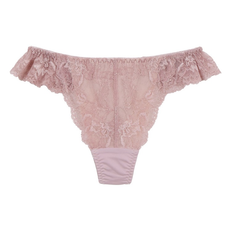 - レースのフリルが可愛らしさも漂わせるTバックショーツ。